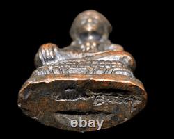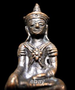 This exquisite Bronze Buddha amulet Insignia Phra Chai Ratchakal is a must-have for collectors of Southeast Asian antiques. The characteristic is image of Lord Buddha, insignia Parng Chana Marn mean act of Victorious from all evils. The classic-color amulet is believed to be created and consecrated for using as Superpower, Bring loving kindness, Auspicious for life, Business prosperous, Wealth, Fortune, Sucess, Business prosperous, Peaceful and Happiness, by a Buddhist Monk in the early 19th century, making it an antique original. The figurine is made of bronze, a primary material that adds to its value.