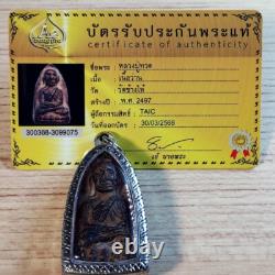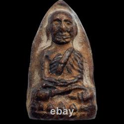 This is a certified and highly sought-after Luang Pu Thuat (LP Thuat) amulet, created in B. 2497 (1954) at the famous Wat Chang Hai in Pattani Province. Crafted from Nuea Wan - a sacred herbal-based material composed of rare plants and roots traditionally used in Thai spiritual medicine - this amulet is believed to possess strong protective and healing powers. Luang Pu Thuat is one of Thailand's most revered monks, well-known for miracles and life-saving energy. His image is believed to offer powerful protection from danger, black magic, accidents, and negative energy.