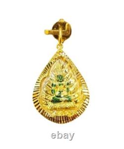 Gold 18k 750 Amulet pendant Emerald Buddha Thai Sacred Fortune Gorgeous Jewelry. The Emerald Buddha, or Phra Kaeo Morakot, is a revered Buddha image of the Rattanakosin Kingdom. It is housed in the Temple of the Emerald Buddha (Wat Phra Kaew) within the Grand Palace in Bangkok.