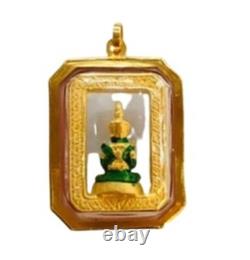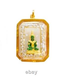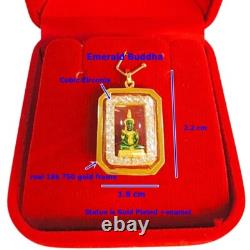The Emerald Buddha is considered to be the most sacred Buddha image in Thailand. It is believed to bring prosperity and good fortune to the country. The Emerald Buddha is also a symbol of the Thai monarchy, and is revered by Buddhists all over the world. The Emerald Buddha is made of green jasper, not emerald. It is 48 centimeters (19 inches) tall and sits on a golden throne.The Emerald Buddha is dressed in different costumes depending on the time of year. These costumes are changed three times a year, to coincide with the changing of the seasons. Emerald Buddha real 18k 750 gold frame, waterproof. Length approx : 1.8cm x 2.2cm.