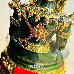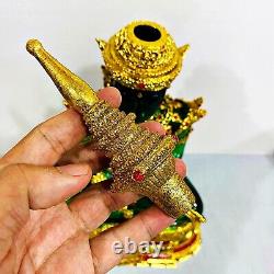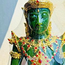 This is a Reproduction of most famoust Sculpture StatueThe Emerald Buddha. Large piece with Heavy Weight. Fine art made with Materials: Clear hard green lucite/plastic or translucent acrylic, highlighted by gold leaf and ruby red rhinestones, with an opaque resin base embellished with more gold leaf details and red enamel. Extraordinary light catching figure with remarkable presence for your home alter or public shrine. Tiny gold leaf particles flake off easily and creates a kind of gold dust around itself. This Statue Depicts A Seated Meditating Buddha. Brand New Condition with vintage style (made in old look). It's been in storage for MANY years. We just tore the old plastic wrapper off of this to photograph it. This statues are made by resin. The mold unique design replica from Grand Palace & Temple, The Emerald Buddha. Items created and finish each statue individually coated gold leaf and gems by hand made. This process includes sanding, polishing, painting and a final polish to give the statue that extra shine. This statue blessed by monk launch from MAHATAD temple, group monks mass chanted. SUMMER ARMOR EDITION, SEAT 5 INCH WIDE, THIS STATUE DEPICTS A SEATED MEDITATING BUDDHA. THAT IS SYMBOLIZES OF PEACEFUL. BELIEVED BUDDHA STATUE WILL BRING GOOD LUCK TO YOUR HOME SO IT GOOD FOR DECORATIVE, DISPLAY IN & OUT DOOR.DateFounded during the Ayutthaya era. The Wat Mahatad is a large and busy temple in the old Rattanakosin district of Bangkok, just North of the Grand Palace. Its full name is Wat Mahatad Yuwaratrangsarit Rajaworamahavihara. The temple is very highly revered; it is one of the six temples of the highest grade of first class Royal temples. The temple enshrines relics of the Buddha.
