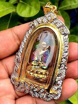 K565 Phra Kring Pawares Seven color amulet, year 2009(BE:2552), Wat Bovornniwet, Bangkok Province. Mixed materials, Multi color, Size 4.86 X 7.13 cm (Approx), Outstanding virtues of Buddha are kindness, popularity, power, charisma, and safety from Thailand.