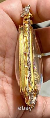 Viewing a very rare Phra Kring amulet in Thailand. Kring Buddha amulet has a tiny pellet sealed in the base which rattles when shaken to bring the bearer prosperity and protection from harm. This is Efficacious Phra Kring Wat Bowon Nur Nawa with Elephant Bring Lotus, strongly blessed by Supreme Patriarch Somdet Sangkaraj in year BE2552.