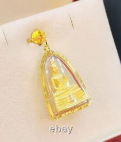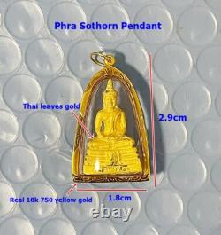 Gold yellow 18k Amulet pendant Phra Sothorn Thai Sacred Buddha Gorgeous Jewelry. Lp Sothon or Phra Phuttha Sothon is an important Buddha image of Thailand. It is enshrined in the Ubosot of Wat Sothon Wararam Worawihan, Mueang District, Chachoengsao Province. It is a Buddha image in the meditation posture, in the early Ayutthaya period art.