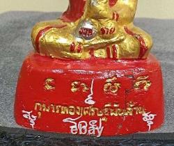 This beautiful Thai Amulet features the powerful Kumarnthong Thep Buddha Gwak, depicted in a beckoning pose with a millionaire model. Made with mixed materials and a multi-color design, this antique original amulet is a true treasure for any collector. The amulet was crafted by Wat Phaniang Taek and is post-1940 in age. It comes from Southeast Asia and is perfect for those interested in Asian antiques. This amulet is a great addition to any collection and is sure to impress with its unique features.