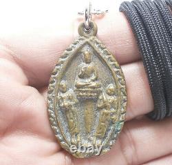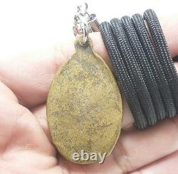 Rope Necklace Length : 60 cm. Can put through head without to unhook. This coin is very old blessed and made by LP Chang of Wat Bangpung Temple in 2485 BE. (1942) Picture of Lord Buddha blessing his high blessing with 2 forms of Phra Sivali (disciple of Lord Buddha with blessing power in trade & business) will bless the owner to success in all wishes with good luck, wealth and prosperity attraction.