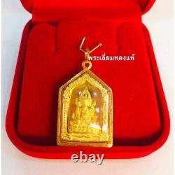 Buddha Chinnarat Pendant 75% real gold casing, waterproof casing, three-dimensional background, very beautiful. Phra Buddha Chinnarat, also known as Phra Si Ratana Chedi or Phra Chinnarat Buddha, is one of the most revered Buddha images in Thailand.It is located in Wat Phra Sri Rattana Mahathat Woramahawihan, also known as Wat Yai, in the province of Phitsanulok. The Phra Buddha Chinnarat image is highly esteemed for its exquisite craftsmanship and spiritual significance. It is believed to have been cast in the 14th century during the Sukhothai Kingdom. The statue depicts the seated Buddha in the "subduing Mara" posture, with the right hand touching the ground and the left hand resting on the lap. The image of Phra Buddha Chinnarat is renowned for its elegance and grace, characterized by delicate features, a serene expression, and intricate details.